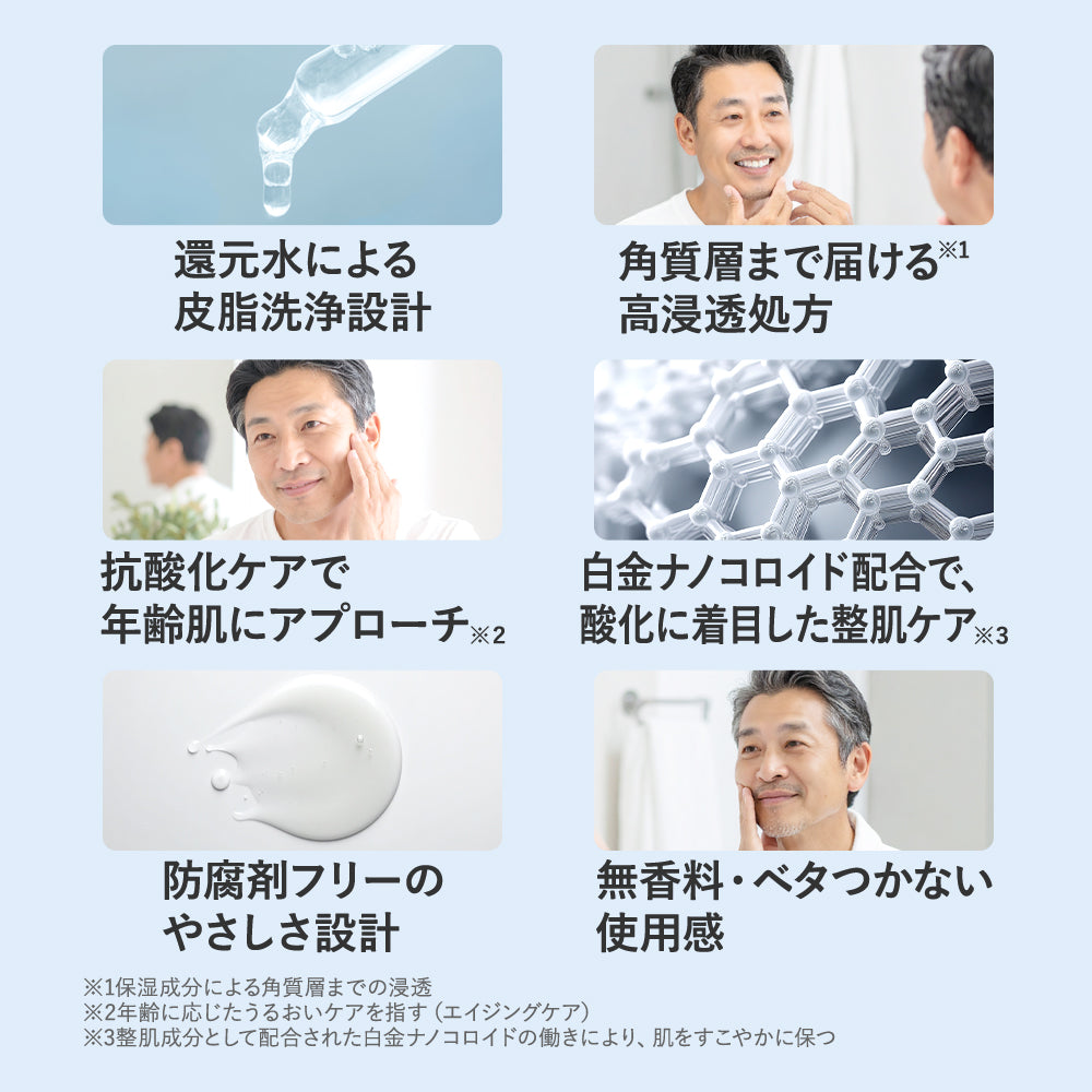 水、白金、フラーレン、チオクト酸、シクロデキストリン、水酸化Na、ポリソルベート80、水飴、BG、PVP、ミネラル塩