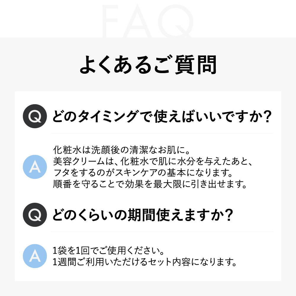 洗顔後のキレイなお肌を化粧水で整え、クリームを手に取りお顔全体に塗り拡げてください。